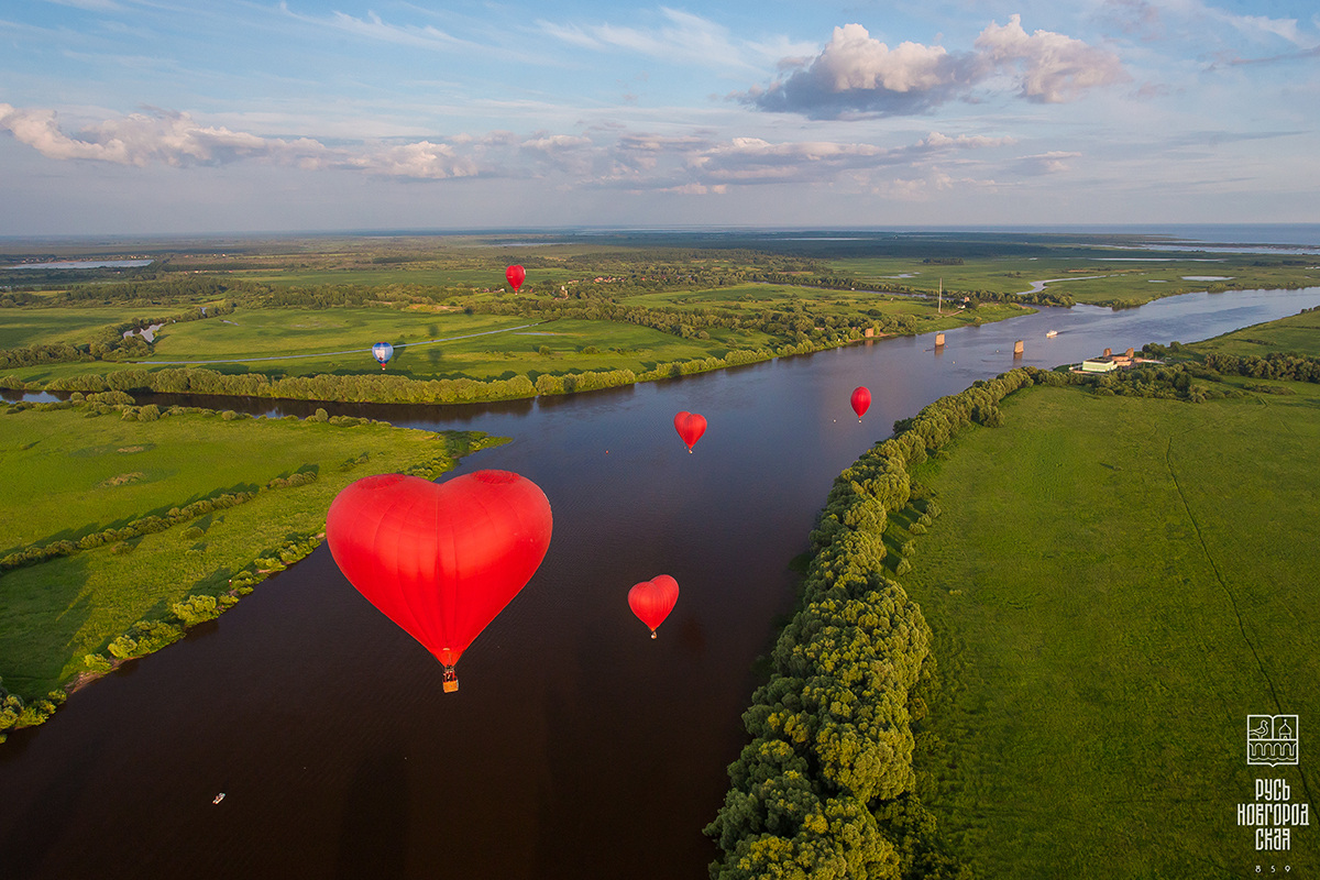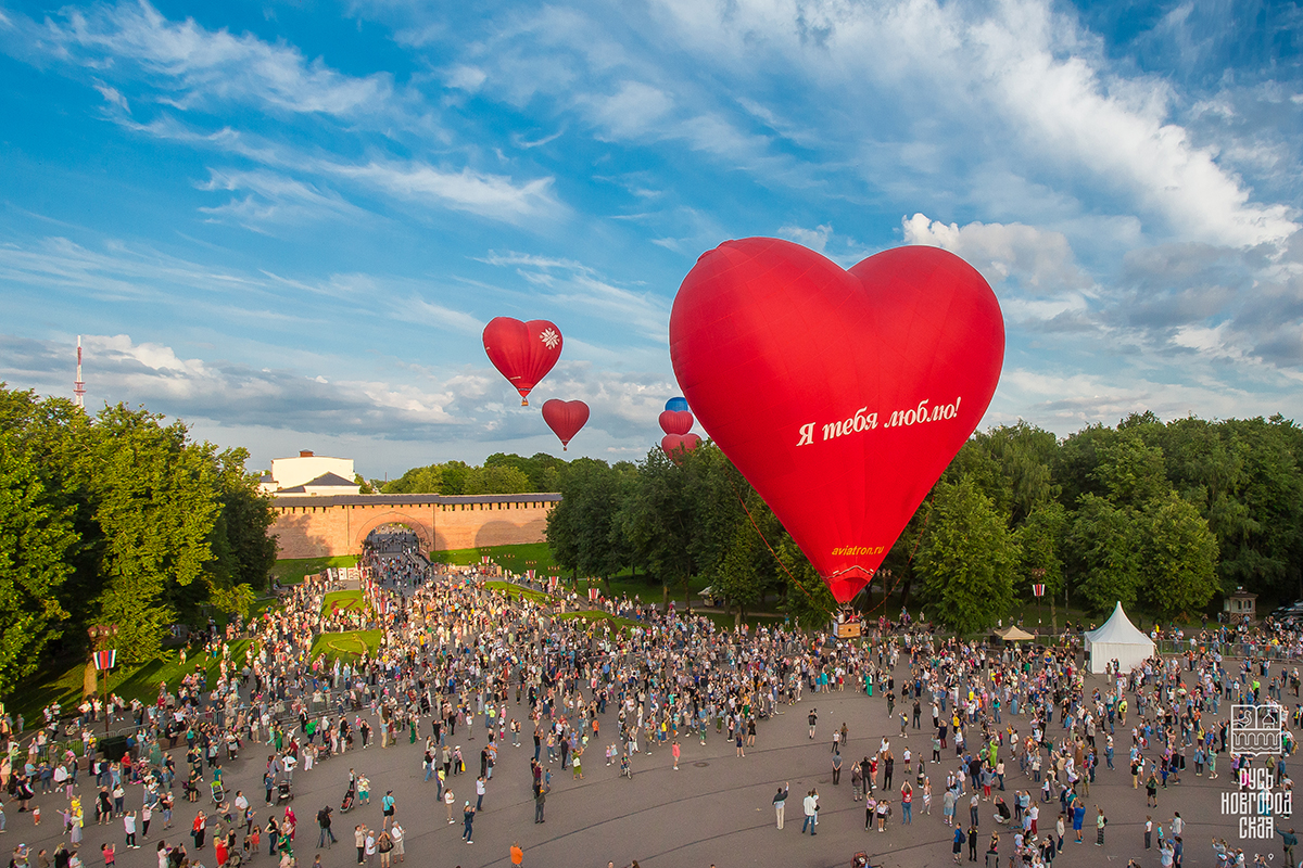 В июле Великий Новгород по традиции становится центром притяжения для любителей неба. В рамках ежегодного фестиваля аэростатов «Великий Новгород — сердце России» над древним городом поднимаются десятки ярких шаров в форме сердец.
