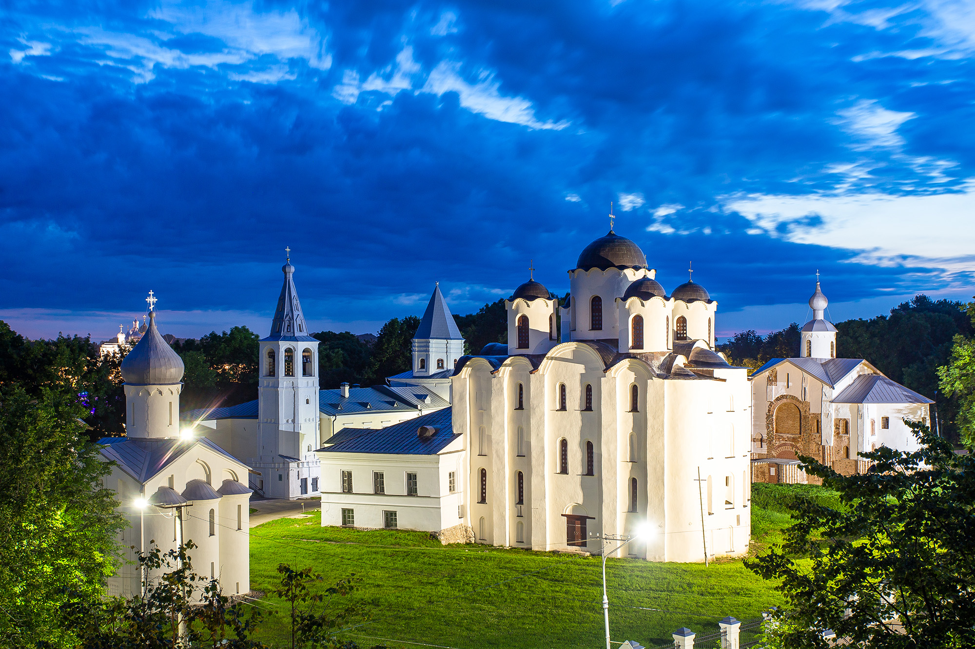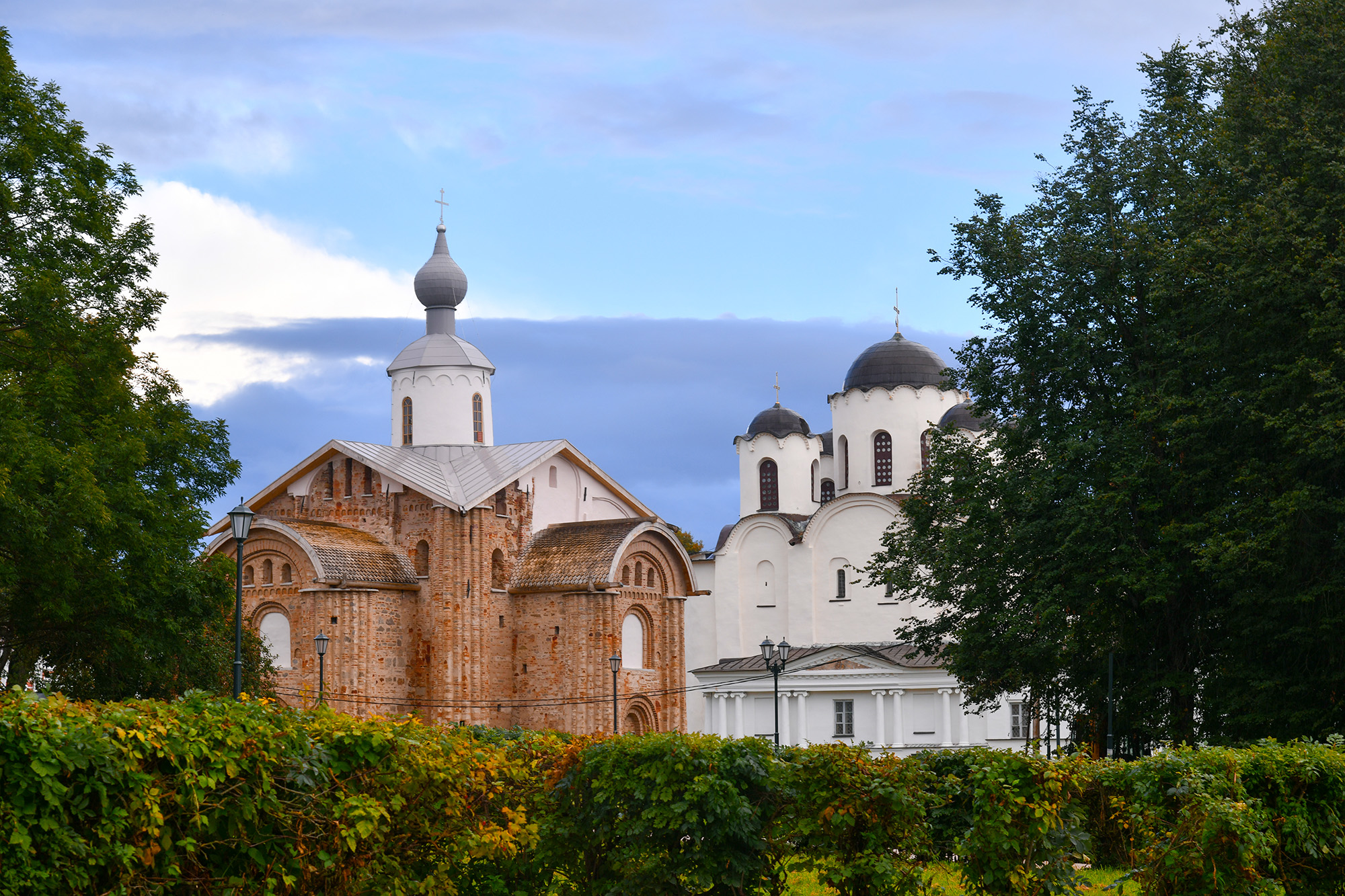 Сегодня на этом месте можно увидеть сохранившиеся белокаменные церкви XII–XV веков, в том числе Церковь Георгия на Торгу, Никольский собор и другие. Эти постройки не только украшают городской пейзаж, но и являются яркими памятниками новгородской архитектурной школы.