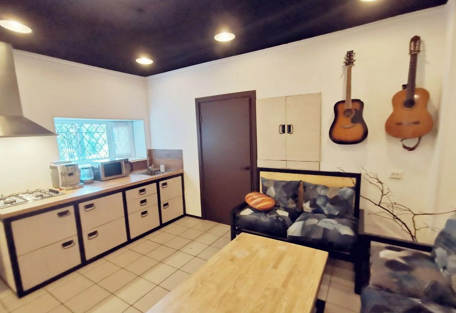 Уютная общая зона предлагает кухню с плитой, микроволновкой и холодильником.